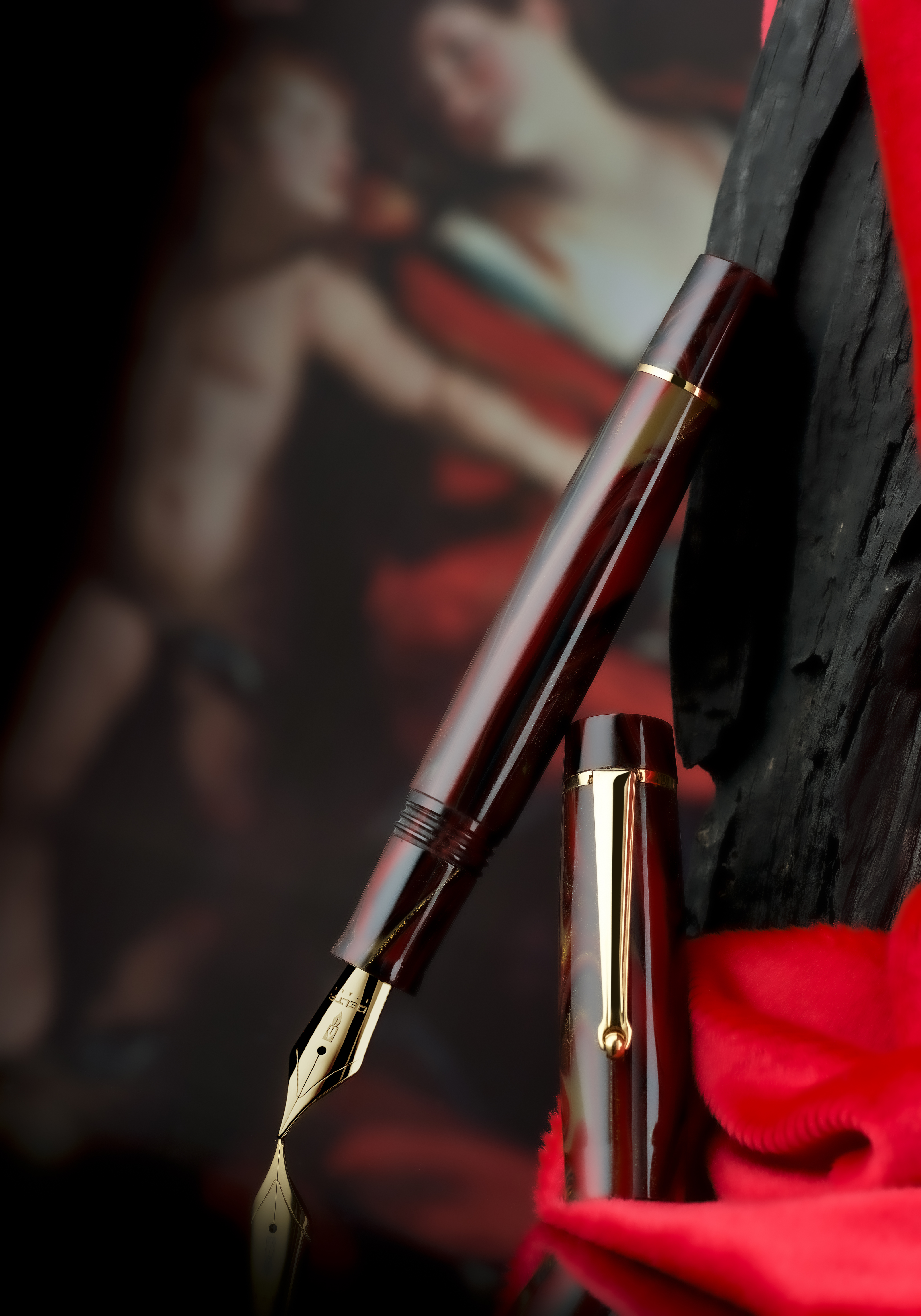 Estetyka Chiaroscuro: Unikalna żywica o głębokich, przenikających się odcieniach czerwieni i brązu nawiązuje do barokowej gry światła i cienia, znaną z płócien Caravaggia.