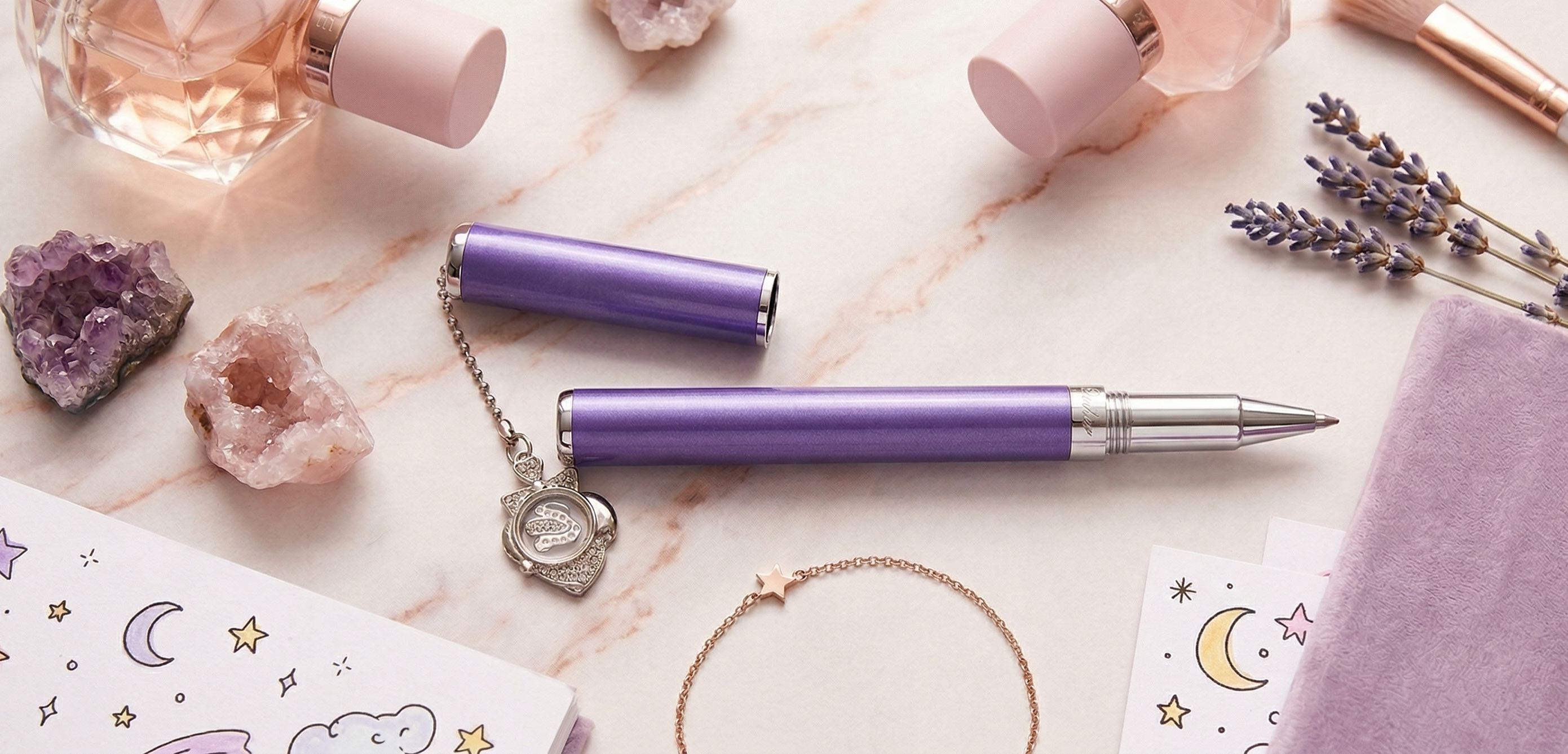 Zjawiskowy kolor: Solidny, mosiężny korpus został pokryty lśniącym lakierem w odcieniu głębokiej purpury. Ten stylowy fioletowy kolor przyciąga spojrzenia i dodaje energii do codziennych notatek!