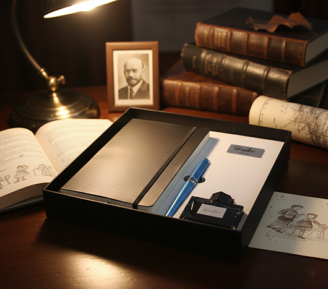 Ten zestaw jest hołdem dla jego dziedzictwa. Centralnym jego punktem jest pióro wieczne – nie tylko narzędzie do pisania, ale również symbol empatii, mądrości i oddania wobec najmłodszych. Jego solidna konstrukcja i elegancki design odzwierciedlają siłę i delikatność, które Janusz Korczak łączył w swoim podejściu do wychowania i opieki nad dziećmi.