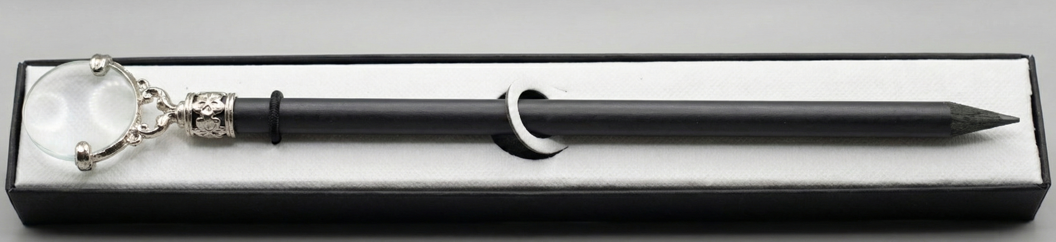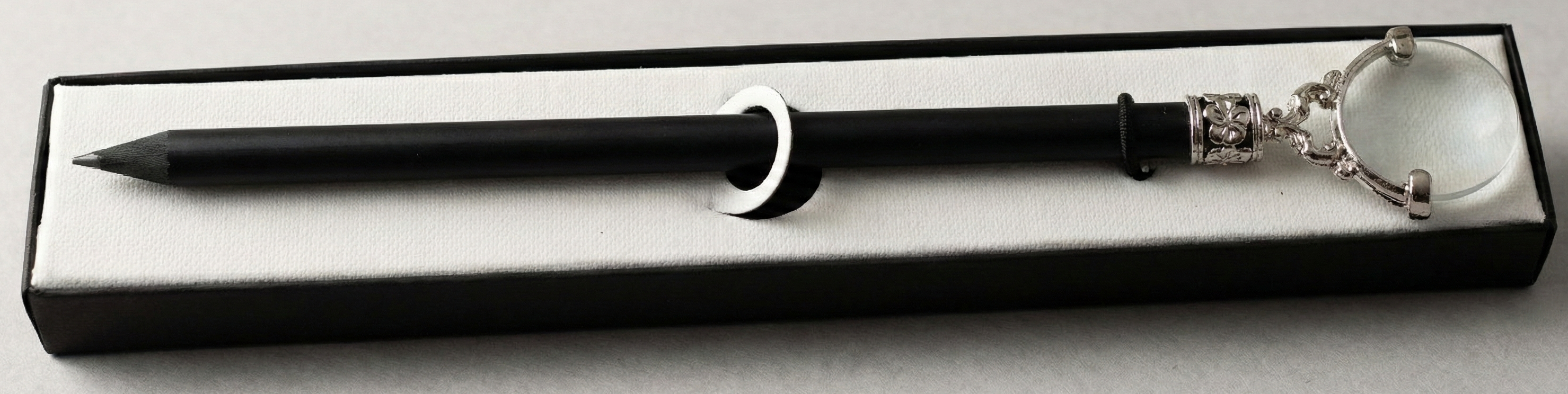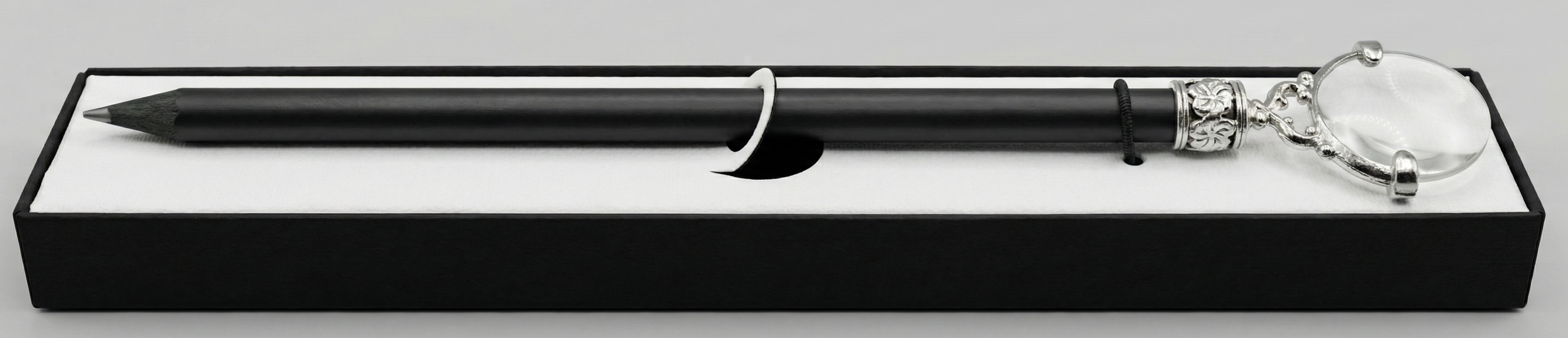 Poczuj ducha dawnych odkrywców i detektywów. Ten niezwykły przedmiot to coś więcej niż ołówek – to klucz do świata detali. Matowa czerń korpusu doskonale kontrastuje z lśniącym, srebrnym wykończeniem lupy, przywodząc na myśl akcesoria z biurka Sherlocka Holmesa czy XIX-wiecznego podróżnika.