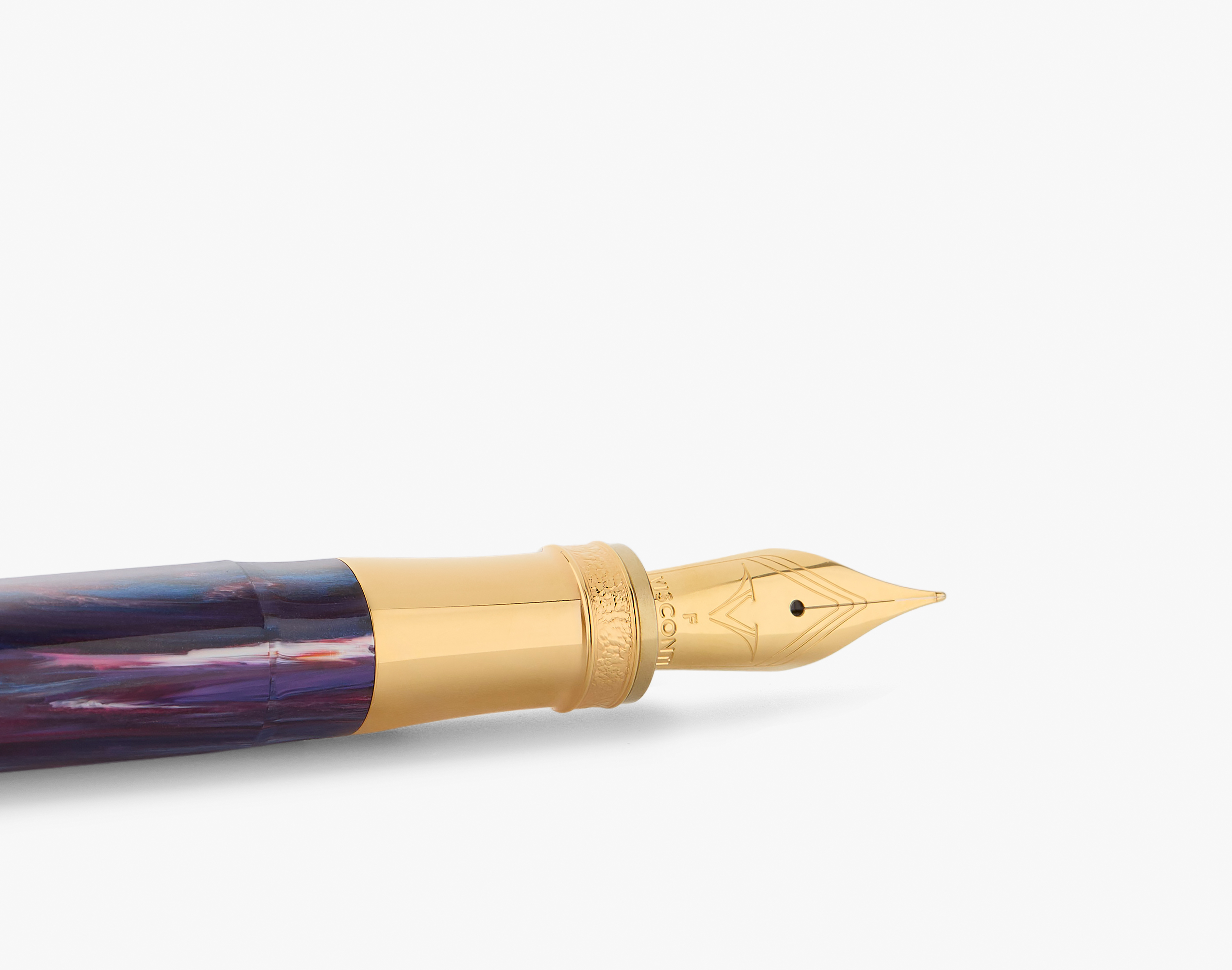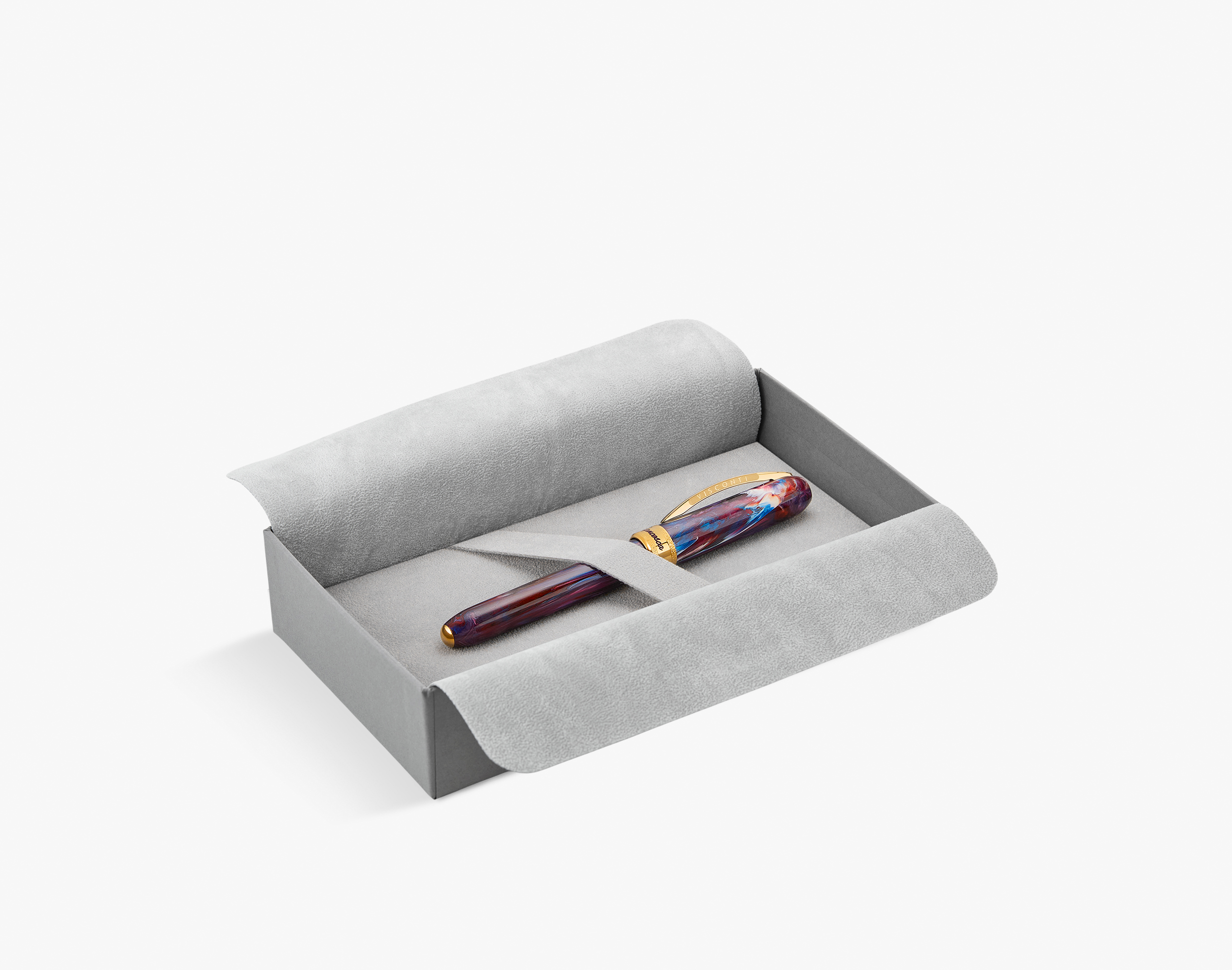 Ta intensywność znajduje swoje odzwierciedlenie w designie pióra, gdzie korpus z żywicy ożywa dzięki płynnej grze czerwieni, fioletu, błękitu i bieli. Czerwień Franceski i błękit Paola łączą się w głęboki fiolet, symbolizujący ich związek, podczas gdy złote, metalowe wykończenia rozświetlają kompozycję, tworząc wyrafinowaną równowagę między światłem a materią.